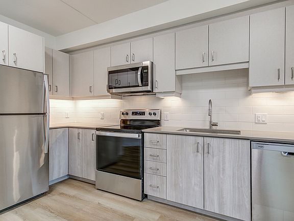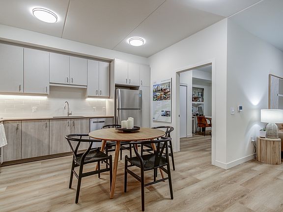 Rooftop patioLobby loungeFitness roomWasher in suiteDryer in suiteLaminate floorsContemporary kitchen tile backsplash