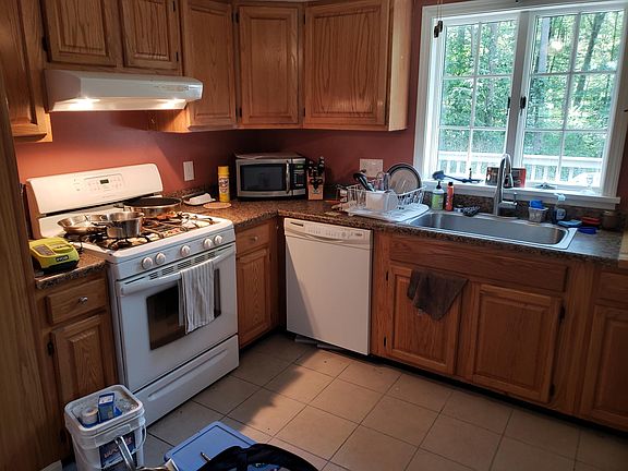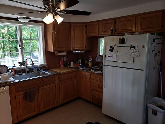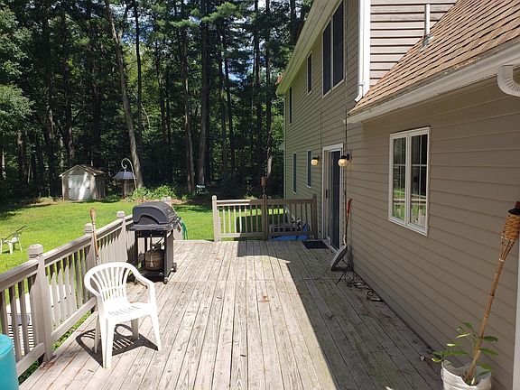 Available for Immediate Move-In: Spacious house on 2 wooded acres in Hampden. Large 4 bedroom, 2 full bath house with many recent updates. Hardwood, Tile, and fresh paint throughout. Set back from the street in a quiet neighborhood. Central Air and Forced Hot Air to keep you cool in the summer and toasty in the winter. Windows everywhere allowing natural light in every room with lovely views at any angle. Large wrap-around deck with space for an outdoor table and grill. Both Bathrooms freshly renovated featuring pedestal sinks, large glass-door showers, multi-flush toilets and storage closet. (Only one pictured as both are identical.) Kitchen: Large single basin SS sink, brand new counter tops, built-in butcher block, Natural Gas 5-burner Range, family-sized refrigerator, dishwasher, under cabinet radio/CD player, ceiling fan and tons of cabinet space. Spacious Dining Room with Ceiling fan and sliding glass door to back deck Living Room features Natural Gas fireplace 8kW natural gas Backup generator, fully automated, powers on if power is lost (will run pretty much the entire house including the well pump, refrigerator and HVAC.) Other features: Brand new Well pump and filtration system, paved driveway that will easily hold 3+ cars, front and back yard. LED bulbs throughout and most overhead lighting has dimmer switch (including bathrooms.) Many small details recently updated like outlets, switches, overhead lighting etc. Layout: Downstairs: Kitchen, dining room, living room, den/office/play room, 1 bedroom w/ 2 closets, 1 full bathroom. Upstairs: Huge Master Bedroom with huge walk-in closet, 1 full bathroom (not attached) 2 bedrooms each with one closet space (closets include overhead lighting.) Basement: Large (family sized) Washer and Dryer, workout area w/ treadmill and multi-bench (weights not included,) and workbench. Access to Hampden-Wilbraham Regional School District, bus stops right out front. Utilities (gas, electric, cable) not included, lawn service and trash pickup are included. Pets negotiable with additional security deposit