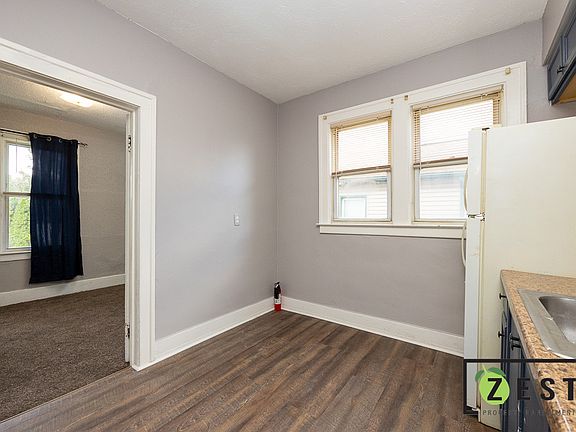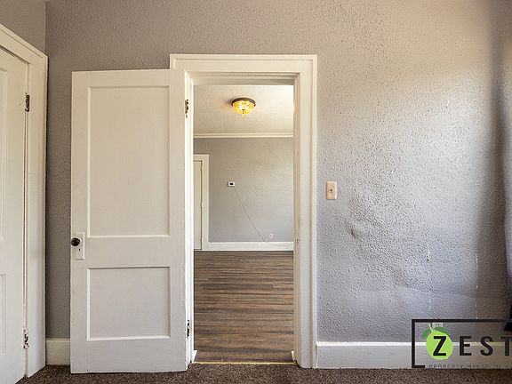 Only accepting applications through ZestPM(dot)com, please do not apply though Zillow. Apartment has own porch, quiet neighborhood, near Jefferson bus line. Washer and Dryers in basement. Has 8 stair steps to walk up. Located walking distance from two parks, grocery store, McDonalds, Subway, Gas station, restaurant (K Saloon), hardware store and 3 cannabis dispensaries. Recently remodeled. Heat and water is paid by landlord. Cooking Gas, Hot water Gas, and Electricity paid by tenant. No Smoking. No Large Dogs
