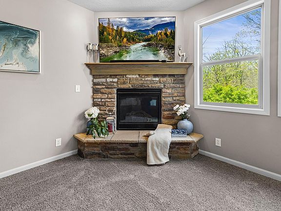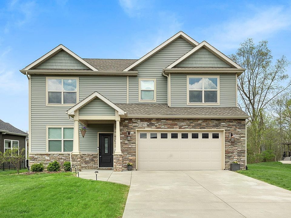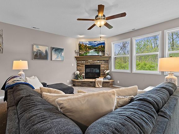 Gorgeous two-story home in the highly sought-after Harrison Highlands neighborhood! Upon entering the home, you are greeted by a main floor den/office. The open-concept living, dining, and kitchen area is the heart of the home, complete with a main floor powder room for your convenience. The living room boasts plenty of windows, allowing for an abundance of natural light to flow throughout the space, as well as a cozy gas fireplace finished with stone. In the kitchen you'll find sleek cabinetry and appliances, a center island with breakfast bar and pantry for additional storage. There is also a convenient mudroom off of the garage. Carpets replaced in 2020. As you make your way upstairs, you'll find a generous master suite, complete with a walk-in closet. The master bath features a stand-up shower, garden tub with tile surround, and dual sink vanity. Two additional bedrooms adjoined by a Jack and Jill bath, each with a walk-in closet, offer plenty of space for family and guests. A spacious loft area on the upper level provides additional living space for an upstairs family room, perfect for movie nights or games! The upstairs laundry is conveniently located near all three bedrooms. Outside, you'll find a custom concrete patio overlooking the backyard, which backs up to a natural setting with a creek below. Enjoy the peace and tranquility of nature without having any neighbors behind you!