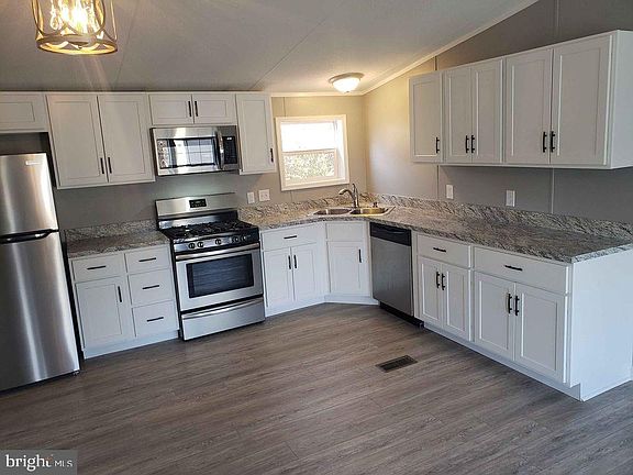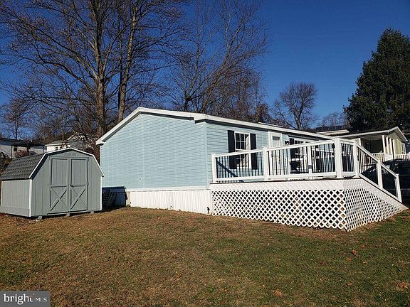Completely remodeled 3 bedrooms and 2 full baths. Master has walk in shower and closet. Better than new double wide with residential upgrades. New roof! New kitchen with (solid wood cabinets with quite close doors and drawers), flooring, lighting, outlets, light switches, bath vanities and shower. HVAC is approx 1 year old. Composite front deck and new rear porch and steps. Even the shed has a new roof. You won't be disappointed. New homes like this will cost much, much more but won't have the upgrades this does! Park owner just paved the driveway. Buyers must be park approved.