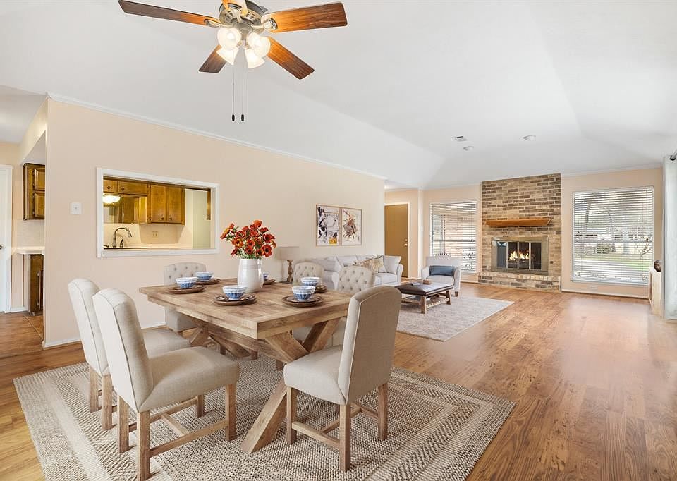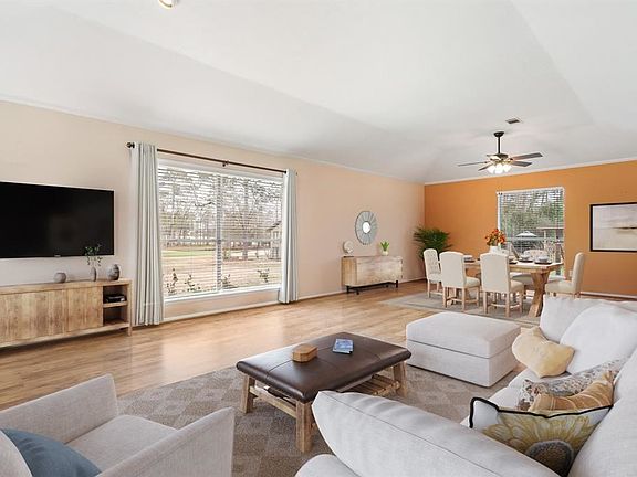 Charming one story golf course home in Panorama! Location is prime not only because it sits at the end of a quiet cul-de-sac that actually dead ends into the golf course and designed to maximize the expansive views of Green Nature and several fairways looking across from the #8 Tee Box, but also for all of the conveniences very near! Shopping, grocery, Outlet Mall, I-45 within 5 minutes and The Woodlands, airport a very short distance away! It has a large living and dining room combined. There is a flex room off of the kitchen that could be a perfect home office! A nice Primary and two additional guest rooms with shared hall bath and no carpet, only pretty laminate wood and tile flooring. It has a 2 car garage and a large fenced back yard and a nice deck to enjoy the quiet, serene setting. Panorama has NO POA or M.U.D.. and offers golf and a community pool. This is a Gem just waiting for new owner offering immediate occupancy. Hurry as this home will not last long!