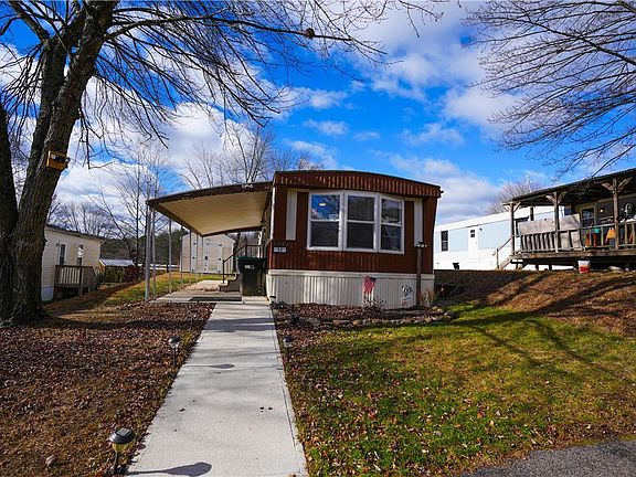 Welcome to this inviting 3-bedroom, 1-bath mobile home in Nis Hollow Estates, offering the perfect blend of comfort, convenience, and charm. Outside, enjoy a spacious covered concrete patio, ideal for relaxation or outdoor entertaining, plus a 12x12 shed with electric and a 2-car parking pad. Step inside to an open, welcoming floor plan where the eat-in kitchen flows seamlessly into the cozy living room, an ideal space for gatherings with family and friends. The living room and front bedroom have updated drywall for a fresh, modern feel. Additionally, this home offers peace of mind with newer mechanicals, including a heat pump with a 12-year warranty and a water heater with a 10-year warranty. A freshly poured concrete sidewalk completes the outdoor upgrades. With lot rent of $525/month covering sewer, garbage, and access to the community pond, this home is an outstanding value!