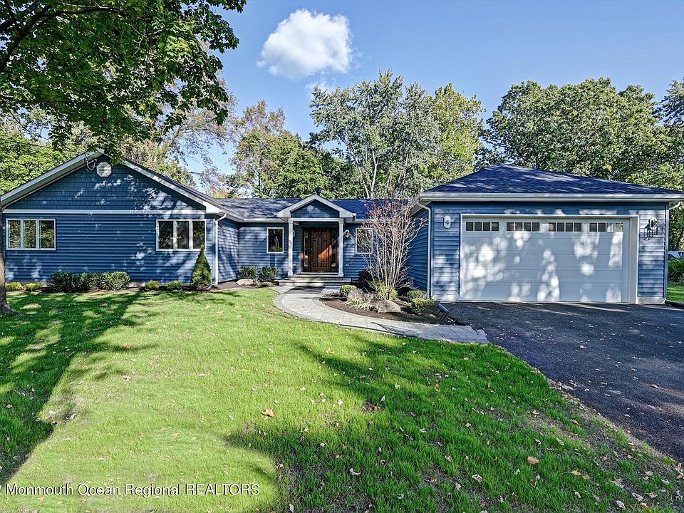 Brand new ranch home located in the Northern section of Tinton Falls offers 3 bedrooms with 2.5 bathrooms, with a 2 car garage. This open concept boasts newly finished hardwood flooring, stunning upgraded new kitchen with stainless appliances, center island, granite countertops, pantry and open shelves.. Primary suite offers full bathroom w/double vanity and walk in closet. New gas fireplace, bar area, just a few more features for this one of a kind home. Large backyard with patio is perfect for outdoor entertaining. Paver walkway and landscaping. Close proximity to GSP, Rte 18, Hot Red Bank, and Jersey Shore Beaches.