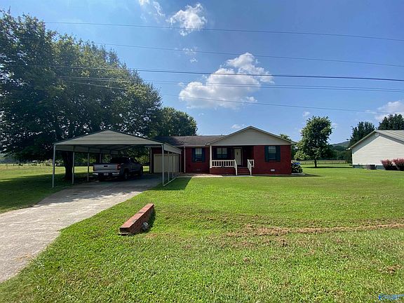 Peace in the Valley! Brick rancher on a quiet street with nice views. Fruit trees and shrubs, plenty of room for gardening, plus fenced-in area for pets! Two-car carport as well as an attached garage. Additional large storage shed in back. Great starter home in the country, but convenient to Scottsboro and Huntsville!