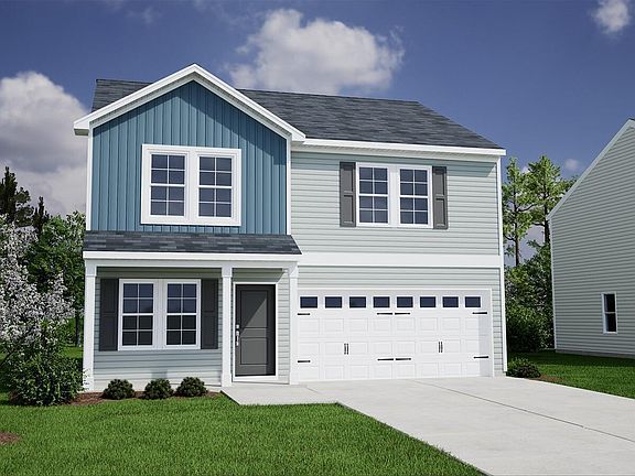 The entryway of this 4-bedroom, 2.5-bathroom home opens onto a flex space that you can turn into a home office or a dining room. Just past it, the kitchen leads to a walk-in pantry and the family room. Upstairs, a laundry room and a full bathroom are conveniently located near the three spare bedrooms. The primary bedroom is connected to its primary bathroom and walk-in closet. The primary bathroom features two sinks, and a separate shower and garden tub.
