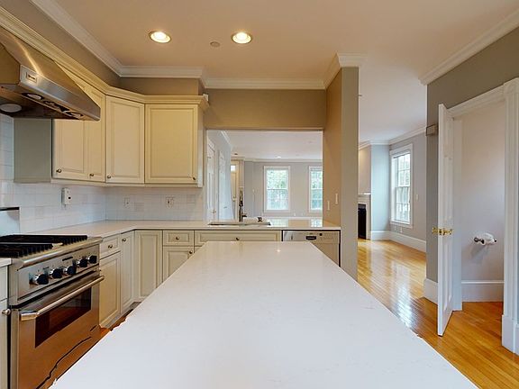 Live in one of the most unique properties in all of Boston! This rarely available 3 bed, 2.5 bath townhouse consisting of almost 2000 sq. ft. comes with 2 side-by-side garage parking spaces. A lush private backyard is located off of the kitchen making it the perfect location for entertaining. A large gas fireplace living room, half bath, and dining room complete the rest of the first floor. The second level features an oversized bedroom with a walk-in closet, a Jack and Jill double vanity bathroom, the second bedroom and laundry. Head up to the top floor where you'll find the enormous primary suite consisting of cathedral ceilings, a walk-in cedar closet, another gas fireplace, and a double vanity bathroom with a tub. Windows on 3 sides capture Southeast to Northwest sunlight highlighting the gleaming hardwood floors throughout. Located at the entrance of the historic Charlestown Navy Yard, the Nautica is a centrally located professionally managed association waiting for you!
