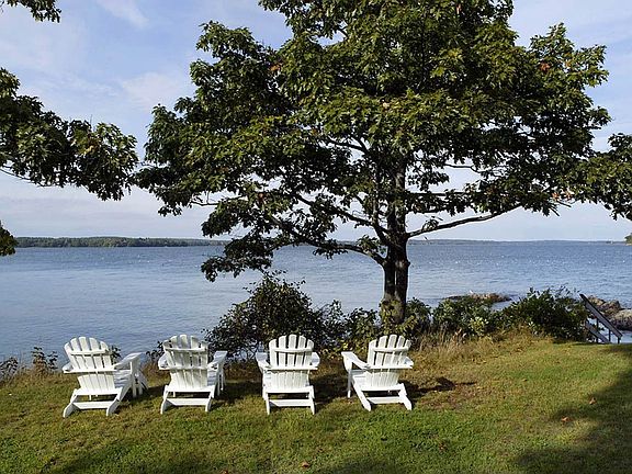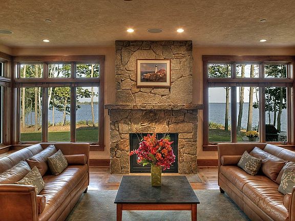 Inspired by the estates of the French countryside, this exceptional home was completed in 2005, and is unparalleled in craftsmanship and materials. Within its 7,300± square feet of living space, the five-bedroom residence provides wonderful water views from every room. The residence features four fireplaces, a gourmet kitchen with separate prep kitchen and a catering kitchen, an elevator, and extensive stone work throughout the home. The beautifully landscaped grounds are highlighted by fieldstone terraces with water views, and a covered porch overlooking the anchorage.