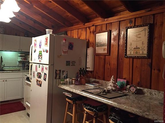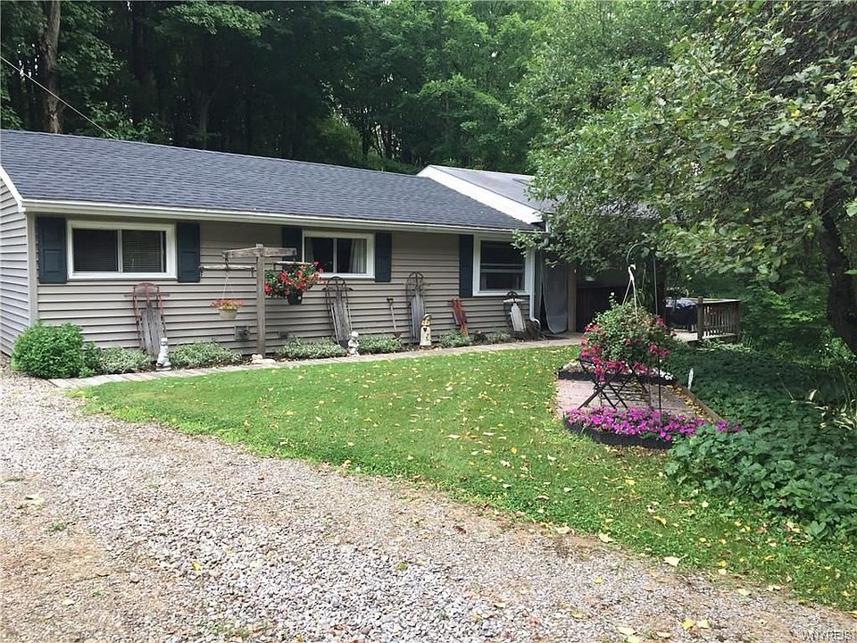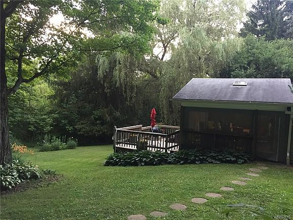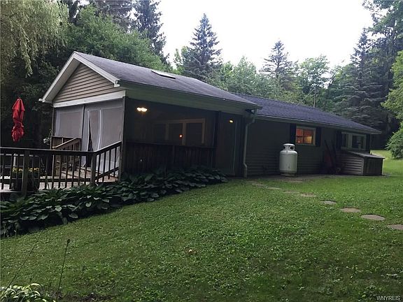 Looking for your home away from home? Superb Cottage nestled on Park-like 1.57 acre wooded lot is maintenance free. 2 bedrooms, 1 bath. Beautiful wood interior. Living room with Cathedral ceiling, skylight. Propane stove. Updated kitchen includes appliances. Updated bath with shower. French doors open to sitting room/den. 20' x 14' enclosed seasonal room (not included in sq. ft) Deck, 2 sheds. Roof -2018. Cottage on concrete slab. Enjoy nature at its best. 20 minutes from E. Aurora. 5 Minutes to Bryncliff Golf Resort. 2019-10-19
