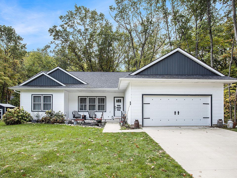This beautiful home is like new! Built only 3 years ago on the Doster Golf Course, this home is ready for new owners. This 4 bed 2.5 bath home greets you with an open concept living, kitchen and dining space with vaulted ceilings, natural lighting, and direct access to the back deck. The kitchen features a sizable island with a snack bar, providing plenty of room to entertain! To the right you'll find the primary bedroom, boasting a walk-in closet and an ensuite with double sinks. This side of the house also sports a laundry room with access to the garage, the half bath and access to the full basement. To the left you'll find 2 additional bedrooms and the 2nd full bath. Downstairs, the basement is partially finished and plumbed for a potential future bathroom, and includes an extra living space, a 4th bedroom, and potential for so much more! The backyard has stunning views, a sizable back deck, and a storage shed, along with an attached 2 car garage. This beautiful home won't last long; book your showing today!