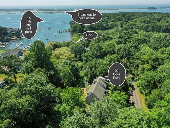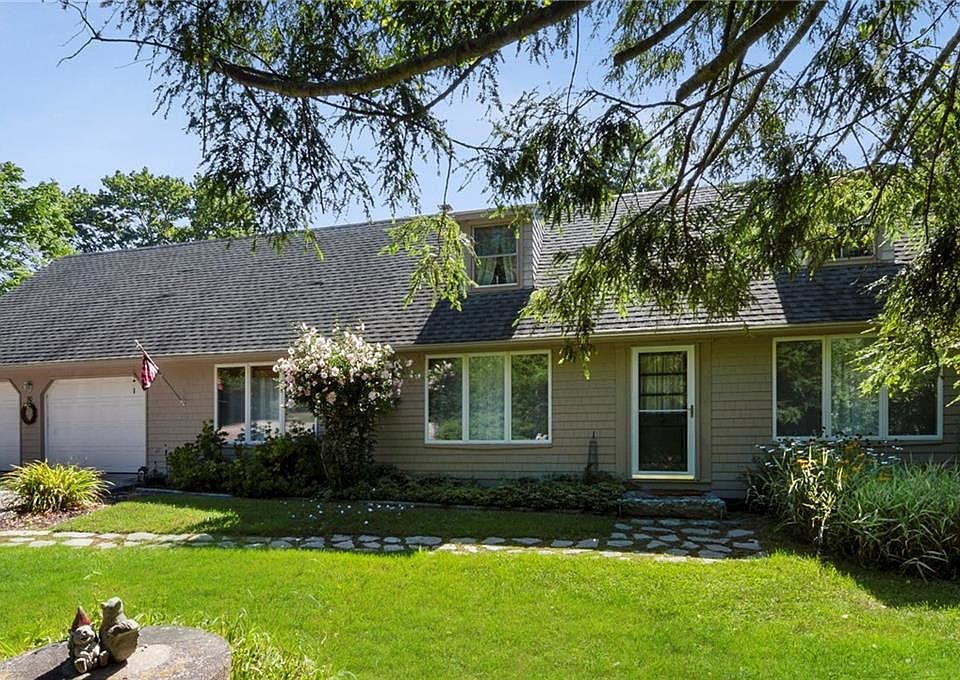 Meander down a beautiful private, country road and arrive at this charming 3 bedroom, 2 bath cape nestled on 1 1/2 acres of park like grounds located in a quaint seaside area of Quonochontaug Pond about 100 yards from the house Notice the flowers blooming, the lush lawn, birds singing and, a brook that flows though the property. Cross to the other side of the babbling brook over a wooden bridge. It is such a peaceful setting! Once inside the house you delight in the fact that there is plenty of living space for the whole family. The main floor consist of a living room with a fireplace, a dining area, a kitchen, full bath, a first floor bedroom and a family room. French doors from the dining area lead to a large 3 season room. Take the spiral staircase to the second level where you will find 2 more bedrooms, a full bath and an office space. The master bedroom has a slider that opens to a rooftop deck. Relax and enjoy your morning coffee, smell the salt air and listen to the sound of the ocean. There is a 2 car garage with stairs that lead up to a large storage area. If more storage is needed, there is always the shed. Deeded rights to Ouonnie Pond and an association dock. Association fee is approximately 2000 per year. Enjoy all the fun the pond offers...fishing, kayaking, water skiing, clamming, etc. Short boat or drive to the ocean. If you are looking for the relaxed coastal lifestyle... come and take a look.