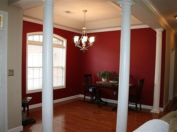 Traditional home w/landscaping & hardwood floors. A formal dining room w/molding, trey ceiling, & dramatic columns provides a perfect place for dining. Family room features a fireplace & french doors leading to the patio. Kitchen has a bay windowed breakfast area & includes stainless appliances, tile floors & built-in microwave. The master suite is a peaceful retreat w/jetted tub, dual vanity & his/her walk-in closets . A laundry room w/built-in storage is accessible...