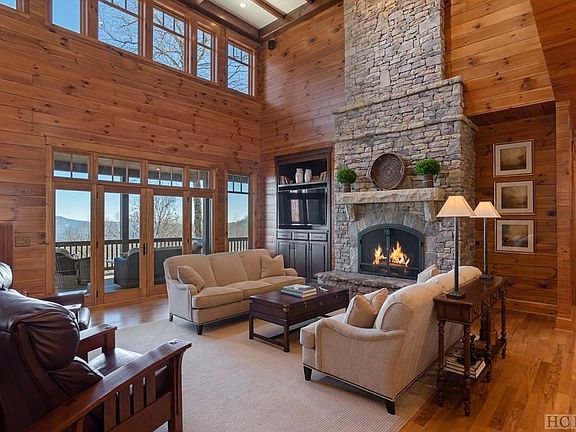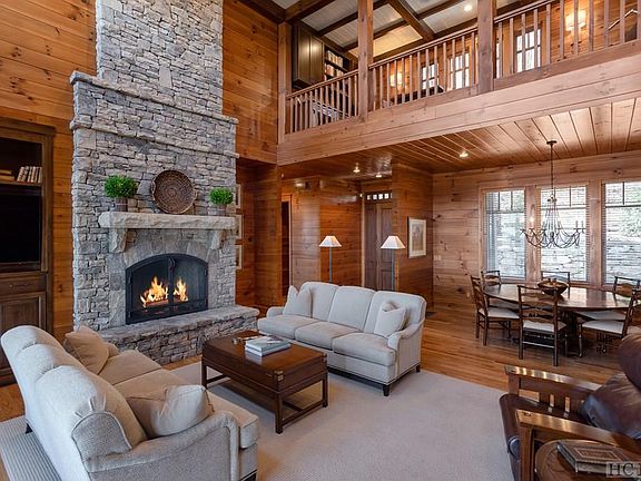 Curated and remodeled by Darren Whatley, this post-and-beam home is a stunning combination of warm mountain charm and contemporary luxury which was originally built by Koenig Home Builders. Watch the splendid sunrise over the mountain ranges while cuddling by either of two outdoor fireplaces. The great room ceilings soar, framing the carefully crafted floor-to-ceiling fireplace. The gourmet kitchen is outfitted with Viking appliances, custom cabinetry, and all the extras such as a wine cooler and a warming drawer. Two primary bedroom suites are on the main level with two bedrooms, while two more bedroom suites and a den are on the lower level. Upstairs, a home office and another bedroom suite round out the living space. This home is turnkey and is being offered with its fine furnishings so you can begin living the mountain lifestyle immediately. Situated between the historic mountain villages of Cashiers and Highlands, Old Edwards at Highlands Cove houses 440 acres of some of Western North Carolina's most stunning terrain. Central to Old Edwards' amenities are the superbly manicured par 71 championship golf courses. PGA professional instructors are available for private lessons to help residents up their game. The full-service, 15,000 square foot clubhouse at Old Edwards Club complements the spa and fitness center beautifully. To round out the experience, a swim complex has also been completed. Old Edwards Club at Highlands Cove offers their homeowners a trifecta of nature, leisure and luxury living. Membership is by invitation only.