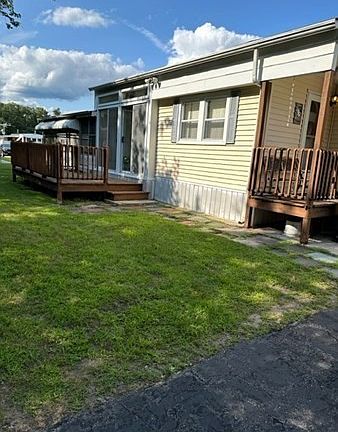 Move right into this well-maintained mobile home on an end lot in 55+ Liberty Estates Mobile Home Park. Enter into an open living room with a bump out and step right up into the dining and kitchen area. You will love the renovated bath with a tiled step-in shower. Picture yourself sitting in the sunroom looking out over the deck and private back yard. There is also a screened in porch and shed providing lots of storage options for you. Flooring is all tile and laminate. Windows have been replaced over the years. The tankless Rinnai Water Heater is less than 3 years old. The asphalt shingled roof is less than a year old. The ages of the furnace and air conditioner are unknown with both working fine today. The monthly park fee of $490 includes water, sewer, property taxes, road maintenance, and trash pickup at the mobile home. Join us for an Open House on Sunday, August 6 from 11 am to 12:30 pm. You will love it!