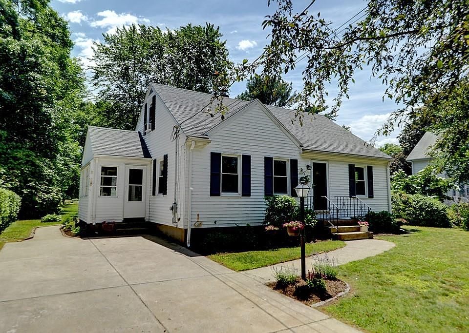 Classic 1,500 sq. ft. New England Cape, beautifully renovated on private 22,172 sq. ft. lot. City sewer and water. Large kitchen with white cabinets, granite counters and center island. Top of the line stainless fridge, dishwasher, stove and microwave. Hardwood floors. Sliders to back yard for easy outside entertaining, Kitchen opens to dining room and living room with lovely hardwood floors. Porch/mudroom. Two bedrooms on first floor, two on second floor. Renovated bathroom. Full basement with washer and dryer, workshop area, plenty of room for storage or you could add a recreation room. Good ceiling height. Private location yet close to train, highway, shopping, Capron Park and schools.