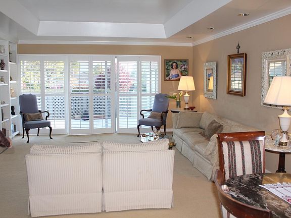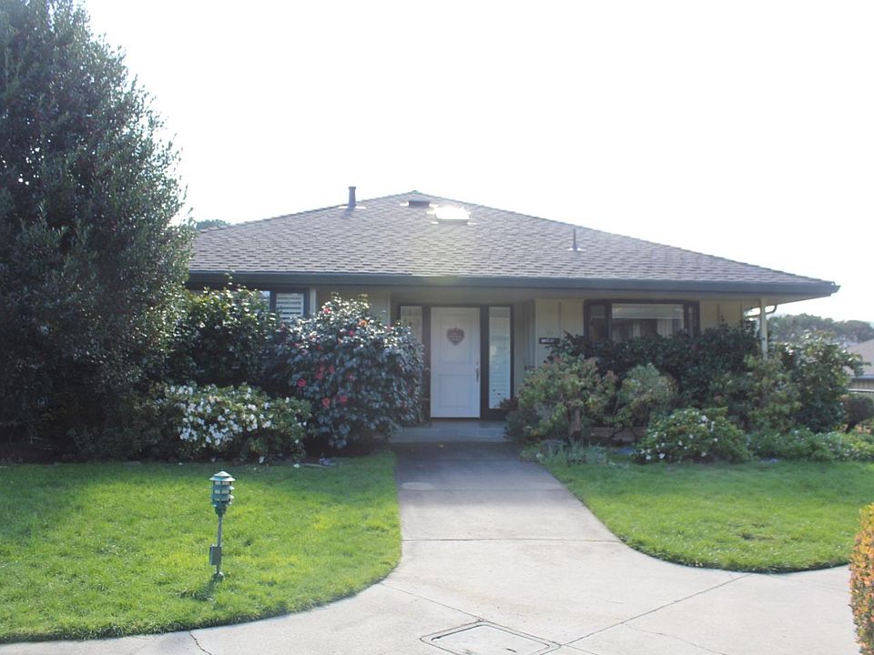 Light and bright open floor plan. This end-unit is one of the few Del Mesa Carmel condos built on a slab. Spacious end-unit "A" model, 2 bed, 2 baths, 1,317 sq. ft. with raised 9 ft. ceiling in dining & living areas. Updated kitchen with garden window overlooks the park-like front setting. Beautifully remodeled bathrooms with travertine and expanded skylights. Pushed-out walls in dining area and both bedrooms for extra comfort and storage. Living room w/custom bookshelves by the fireplace, large entry skylight, plantation shutters throughout, recessed lighting, crown moldings, clean radiant heating and efficient California closets in the bedrooms. Washer & Dryer hook-ups. Excellent location, right behind the Club House and close to parking. Del Mesa Carmel is Californias prestigious 55+, 24-hr. gated, active adult community!