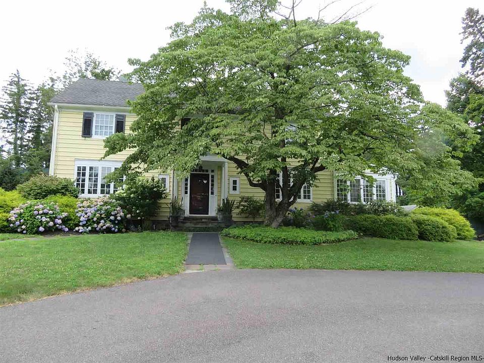 PRETTY AS A PICTURE, A CENTER HALL COLONIAL TO RIVAL ALL, PERCHED UP OFF THE STREET SURROUNDED BY LUSH LANDSCAPED PERENNIALS. THIS MAGNIFICENT PROPERTY IS WITHIN WALKING DISTANCE TO UPTOWN KINGSTON. STROLL TO THE FARMERS'S MARKET, SHOPS AND RESTAURANTS. MINUTES FROM THE THRUWAY AND BUS STATION. RETAINING ALL THE CHARM AND CHARACTER OF YESTERYEAR YOU ENTER THE SUNDRENCED FOYER AND SEE A BEAUTIFUL WOOD PANELED ENTRY HALL WITH A STUNNING WOOD STAIRCASE LEADING TO THE SECOND FLOOR WRAP AROUND LANDING AND HALF BATH. THE MAIN LIVING AREAS HAVE AN ABUNDANCE OF NATURAL LIGHT, SPACIOUS ROOMS, WOOD FLOORS EXCEPT KITCHEN AND BATH AND LOTS OF ATTENTION TO DETAIL. ENJOY RELAXING IN YOUR LIVING ROOM WITH BEAMED CEILING, CROWN MOULDING, WOOD FLOORS AND A GLOWING WOOD BURNING FIREPLACE WHICH OPENS TO THE FAMILY ROOM AND KITCHEN. FAMILY ROOM HAS AN INCREDIBLE STONE WALL, LOTS OF WINDOWS AND A VIEW OF THE POOL. A COOKS DELIGHT GOURMET KITCHEN WITH GRANITE AND STAINLESS STEEL COUNTER TOPS, LOTS OF CABINETS, ISLAND, CERAMIC PLANK FLOORING AND DOOR TO BACKYARD PATIO WITH A STONE WOODBURNING FIREPLACE. THE ELEGANT DINING ROOM EASILY ALLOWS FOR LARGE GATHERINGS OR INTIMATE DINING. THE SECOND LEVEL CONSISTS OF THREE BEDROOMS AND TWO FULL BATHS, LAUNDRY CLOSET AND CEDAR CLOSETS AND WOOD FLOORS. THE MASTER BEDROOM HAS A WALK IN CLOSET AND FULL BATH. THE THIRD FLOOR IS FINISHED WITH TWO ROOMS WITH CARPET AND IS NOT COUNTED IN SQUARE FOOTAGE. THE BASEMENT HAS A FINISHED REC ROOM AND ROOT CELLAR. THE FENCED IN BACK YARD IS A PERFECT OUTDOOR OASIS WITH A SENSE OF PEACE, CALM AND CONNECTION TO NATURE. IT IS AN ENTERTAINER'S PARADISE WITH A PATIO AREA, A STONE WOOD BURNING FIREPLACE AND SITTING AREA, AN INGROUND SALTWATER POOL AND A 26 X 14 GUEST COTTAGE BUILT IN 2016. LOCATED CLOSE TO RAIL TRAILS, SKIING, THE MOHONK PRESERVE AND MINNEWASKA STATE PARK. NEW GAS FURNACE IN LAST YEAR. DAIKEN SPLIT DUCTLESS AC IN LIVING ROOM, MASTER BEDROOM AND THIRD FLOOR. NEW LINER IN POOL. WHOLE HOUSE BACKUP GENERATOR. THIS METICULOUSLY MAINTAINED HOME WILL NOT LAST LONG ON MARKET. BLACKTOPPED CIRCULAR DRIVE PLUS LOTS OF PARKING. PLEASE NOTE THAT THE MACKENZIE-CHILDS FIXTURE IN KITCHEN DOES NOT STAY.