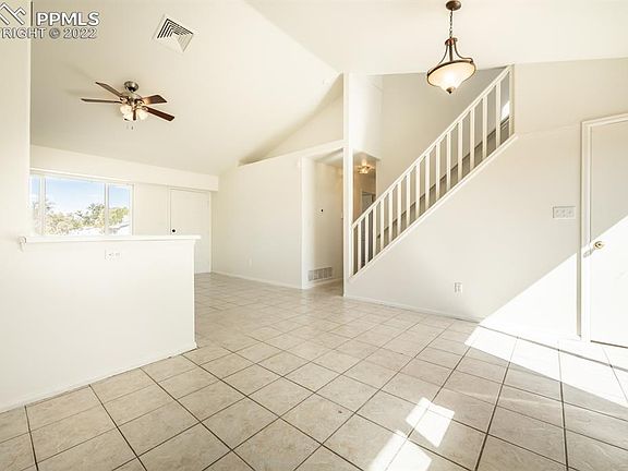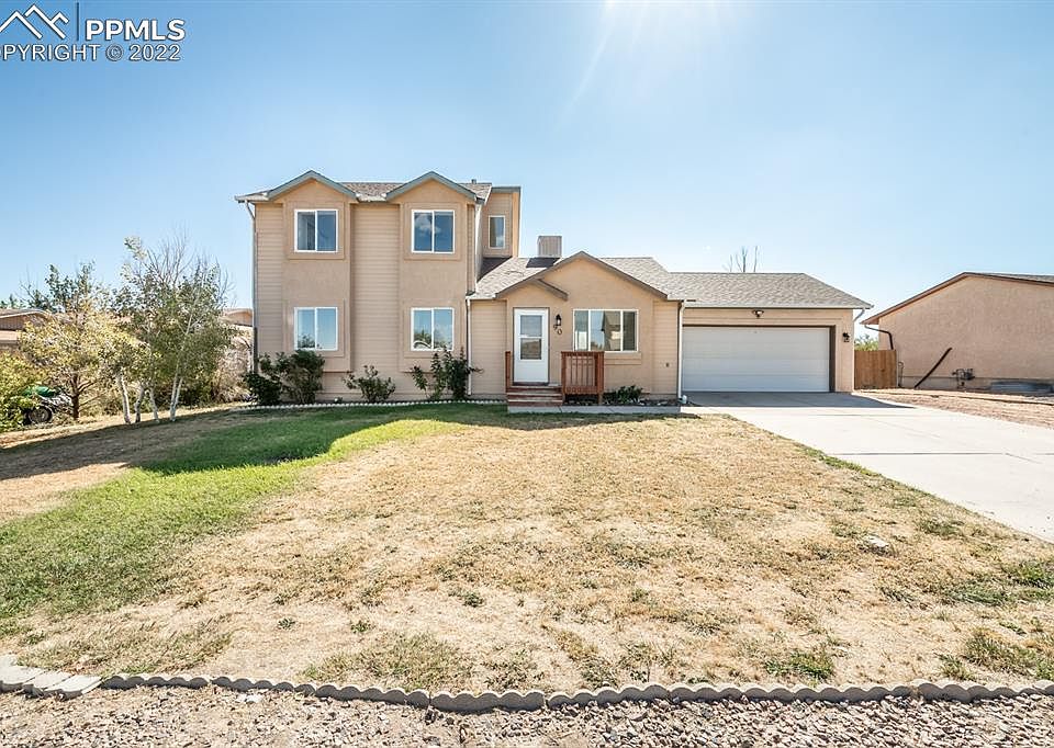 Check out this 2 story home in Pueblo West East. This home features 4 bedrooms, 3 bathrooms and 2 car garage with a large back yard. Upon entry, notice the high vaulted ceiling and open concept with a large living room and kitchen with attached dining area with tile throughout. Built in 1998, this home is 1563 sq ft and boasts a large master suite area upstairs, with en suite style bathroom and a large sitting room and attached laundry area. The main level houses the remaining 3 bedrooms, 2 with brand new carpet and main full bathroom. The front yard has some landscaping and the backyard is ready for your imagination and creativity to bring it to glory. The rear deck has been repaired with new supports, fresh paint throughout the entire home as well. This one is a great deal. Don't miss out on this one!