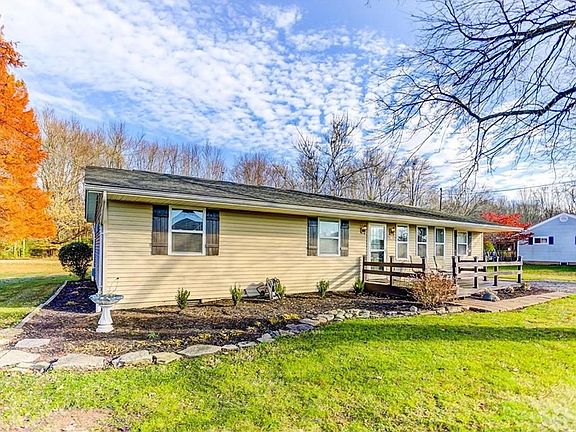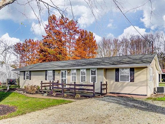 UPDATED! UPGRADED! SOPHISTICATED! Beautifully updated 3 bedroom, 1 bath ranch. Over 1850 square feet in this sprawling ranch on .5 acres. Charming front porch with room for seating welcomes you home. Large living room with crown molding and updated flooring is open to updated kitchen with newer countertops, cabinets. All appliances stay! Oversized sunken family room with new carpet, WBFP, can lighting, chair rail. Enter the beautiful French doors to the home office. Extra large master bedroom with sitting room, newer carpet, stunning natural woodwork, and paddle fan. New vanity, sink, and lighting in bathroom. Jumbo laundry room with washer, dryer, utility sink, and ample storage. White, six panel doors throughout. Lovely large rear yard with patio, fire pit, large barn with gravel floor, and woods. New roof in 2012. Updated windows. New leach lines for septic system in 2014. New water heater in 2014. New sump pump in 2017. Low monthly utilities! Truly turnkey condition! MUST SEE!