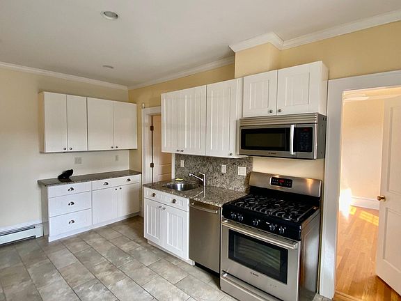 This is the one! STUNNING 2 bedroom apartment with a renovated kitchen and bathroom that are both gorgeous! This apartment features a massive living room with 12+ foot ceilings, 2 good sized bedrooms, and has central AC! There's also free laundry in the basement and 2 parking spaces included! The location is unbeatable-with easy access to the Mass Pike and walking distance to the Commuter Rail. This apartment is also walking distance to everything that West Newton has to offer such as Paddy's Pub, Work Out World, CVS, The West Newton Movie Theater, The Cherry Tree, and so much more! The move in date somewhat flexible. The tenant pays for gas and wifi. The owner pays the electric and water.