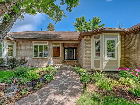With 5 bedrooms, main floor office, 5 bathrooms, a wrap-around wood deck with access from the primary bedroom and great room, a flagstone walkway and curved driveway, this home is a rare find from the moment you approach it. The 0.8-acre treed lot is professionally landscaped with built-up garden areas. Backs to open space and Dutch Creek! Private park like, with no homes in back! Flagstone patio with wood-burning fireplace. Lawn irrigation water is provided by Columbine Country Club for a nominal annual fee. Ideal golf community location near the prestigious Columbine Country Club. Bike, hike and run on the nearby Platte River Trails! Easy access to C-470, Chatfield Lake, Historic, charming Downtown Littleton, Aspen Grove shops, light rail, and Southwest Plaza. The property is within the coveted Littleton Public Schools district; Heritage High, Goddard Middle and very close to Wilder Elementary. The thoughtful architectural features of this home include an open floor plan with excellent flow, skylights, ceiling fans, unique vaulted ceilings, and a dramatic tray ceiling in the tiled entry foyer. A well-designed, remodeled kitchen with a bay-windowed dining nook, and a formal dining room. There is ample storage throughout, including two large crawl spaces. The rooms are spacious with ample closets. All the premium appliances are included. Rich hardwood flooring. Built in 1990 with an addition in 2008, it is not one of the older homes in the area. Architectural plans are available. 3-car oversized garage w/ workbench and shelving. The basement has the potential to be an in-law or multi-generational living area, with two bedrooms, a 3/4 bath, a kitchenette with huge cedar closet and a large media/family room with high ceilings, for a potential home theatre. The home is intentionally left in a condition for the new owner to choose their own colors, carpets, and other personal touches. If seeking a comfortable living and/or entertaining lifestyle, this home has IT!