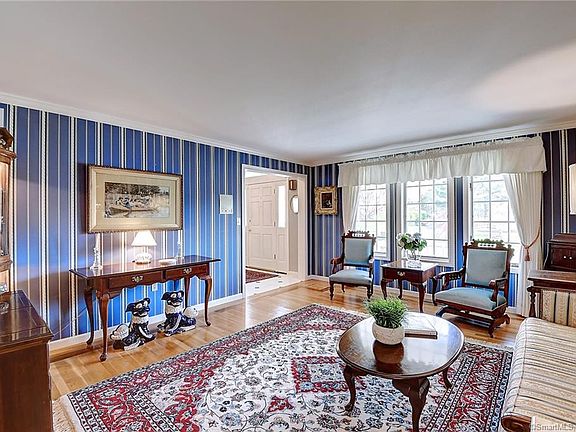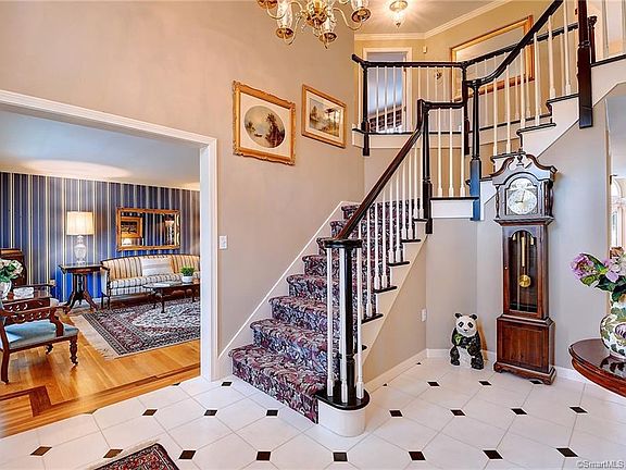 Fantastic lot & curb appeal in a picturesque golf course community. Enjoy your mornings on the front porch & your evenings lounging by the pool, warmed by its southern exposure. This is a rare home that offers the perfect layout for a large or multigenerational family. Looking for that main level bedroom with a full bath? Looking for a private ensuite area for guests, teens or au pair? This home has both! Enter into a gracious 2 story foyer. To your right is a richly paneled study that can also be used as a bedroom w/ ensuite bath. To your left is the elegant living room leading to the formal dining room that can comfortably seat a large gathering. To the rear of the home, is the bright, open kitchen & family room w/ sliders to the deck. Notice the gas fireplace, trim work & built in wet bar. Plenty of room to display your collectibles. The upper level offers a master bedroom w/ dramatic windows, 2 walk in closets & a full bath w/ dual sinks & jacuzzi tub. Three more bedrooms & a full bath complete the upper floor. But there is more: the large au pair or in law suite that is accessed via an independent set of stairs from the mud room. Now step outside to the private backyard with its heated and lit gunite pool. Enjoy entertaining in a professionally landscaped setting w/ additional room to spread out onto the flat side yard. Other highlights of the home include an irrigation system, public water & sewer & natural gas heat. Furnace & AC less than 5 years old, roof 5 years old.