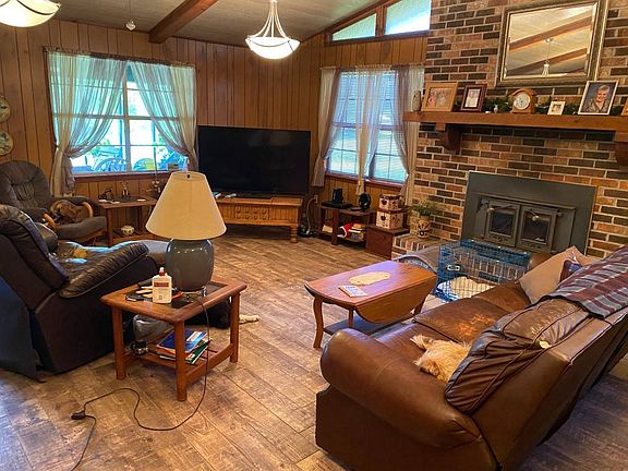 Over 300 feet of shoreline at this Lanan Waterfront property, with water on 3 sides. This home has approximately 1832 square feet of living area with 4 bedrooms and 2.5 bathrooms. Open living plan with a beautiful wood burning fireplace that can heat the home. Located near Griffin's Lodge, the location on this property is perfect. There is a 24 X 32 enclosed building for shop area and lawn equipment storage. The large screened in porch offers great relaxing overlooking the shoreline. Nice 1 stall boat house with lift. This property also has a very nice in ground swimming pool overlooking the lake. All situated on 0.95 acres +/-.
