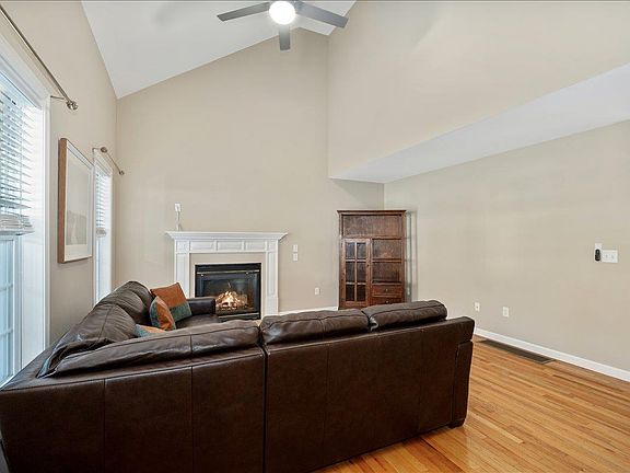 Set back from the street in sought-after Southridge community, this beautifully maintained Cape-style home offers comfort, style, and convenience. The 1st floor primary suite features a private bath and walk-in closet, while the vaulted main living room impresses with hardwood floors and a cozy fireplace. The open-concept kitchen boasts granite countertops, a tile backsplash, and an island with an eat-in area, flowing seamlessly into the bright sunroom that is perfect for relaxing or entertaining. The sunroom leads to the lush yard and wooded back area. On the 2nd floor you’ll find two spacious bedrooms and a full hall bath. The large basement provides plenty of storage or potential for future expansion. Enjoy peace of mind with new mechanical systems and a low monthly condo fee of just $70, covering landscaping, trash removal, and road maintenance. Located in an excellent walking neighborhood close to Crystal Lake, this pet-friendly community has no age restrictions and offers easy access to highways, shopping, and commuter routes.