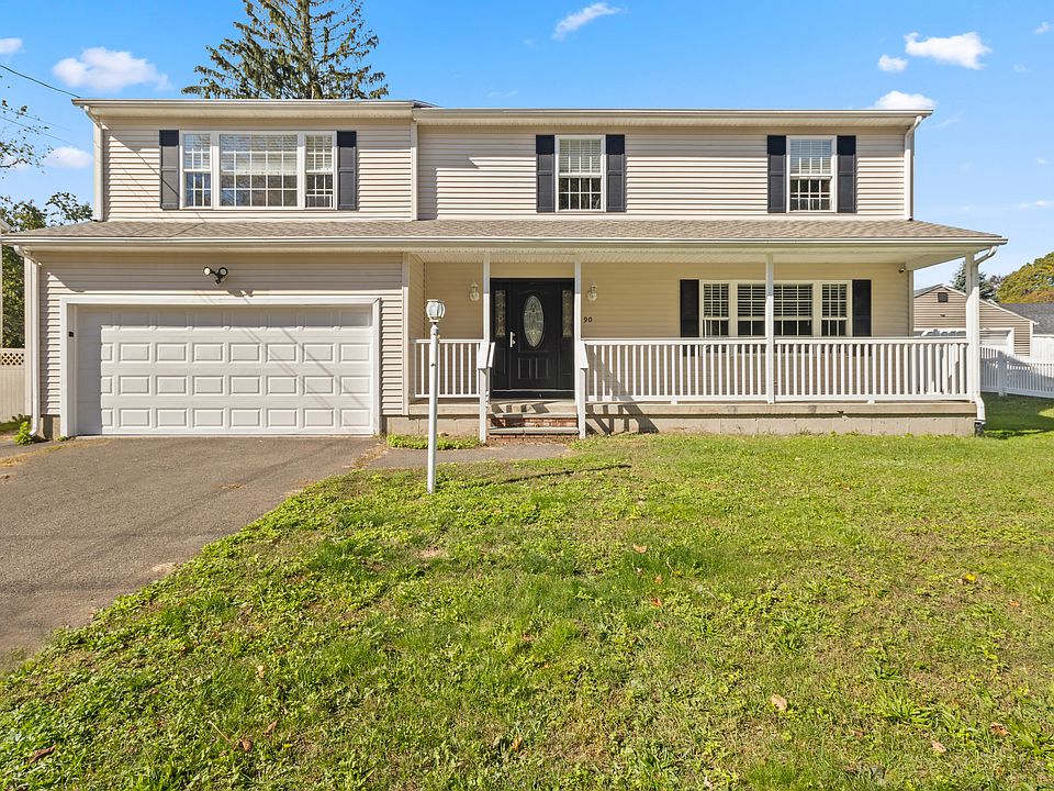 Beautifully updated colonial in the heart of East Haven. this center hall colonial features a beautiful level flat yard perfect for entertaining. Walk through the front door to an open and light floor plan featuring newly finished hardwood floors on the first floor, cathedral ceilings in the living room with stainless steel appliances opening into the kitchen. The second level of the home features three bedrooms all with brand new carpeting throughout.