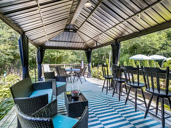 Calling all bakers and Top Chef wannabees! This residence is a dream come true for bakers and cooks who relish the joy of creating gourmet meals and delectable cakes and pies. The primary kitchen has a suite of stainless-steel appliances and the second kitchen has a two additional stainless steel wall ovens plus an island and amazing storage- a true haven for culinary enthusiasts and entertainers alike. Step outside and discover a large deck, a charming stone fireplace and two elegant gazebos with an expansive turf area for memorable gatherings. Whether you're hosting a summer barbecue or a cozy fall evening, this outdoor space is perfect for making the most of every season. Inside, the home continues to impress with four bedrooms (one currently a home office), a large dining room, fireplaced living room, a home theatre for cinematic experiences and a dedicated exercise room to maintain your fitness routine. Hardwood floors throughout add a touch of sophistication and warmth. The wonderful space throughout this home, inside and out, makes living easy! Newer roof (2020), driveway, windows and leased solar panels with Tesla.