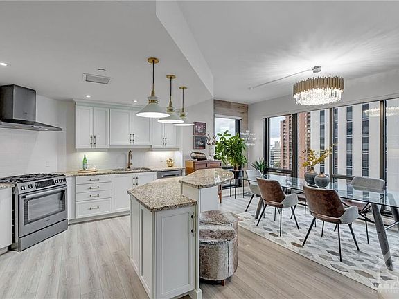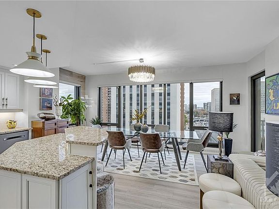 Welcome to the epitome of urban living at 90 George Street, one of Ottawa's most exclusive addresses. This sophisticated 2-bedroom, 2-bathroom condo seamlessly combines modern elegance with practical comfort. Step into a recently updated kitchen with newer appliances, complete with contemporary finishes, stone counters, and new fixtures, all complementing the new hardwood flooring and fresh paint throughout. The space is bathed in natural light and accentuated by stylish new lighting fixtures. A large balcony invites you to enjoy sweeping southwest views of the city. This corner unit boasts 1285 sq feet of modern finishes. Entertain in your large dining and living room. A spacious primary bedroom with huge spa-like ensuite, bright second bedroom, and an updated main bath - all with special touches. This building boasts all of the amenities, salt water pool, hot tub, sauna, patio with BBQs, gym, party room, bicycle storage and is steps away from all amenities you might want. 24 hr irrev 2023-11-23
