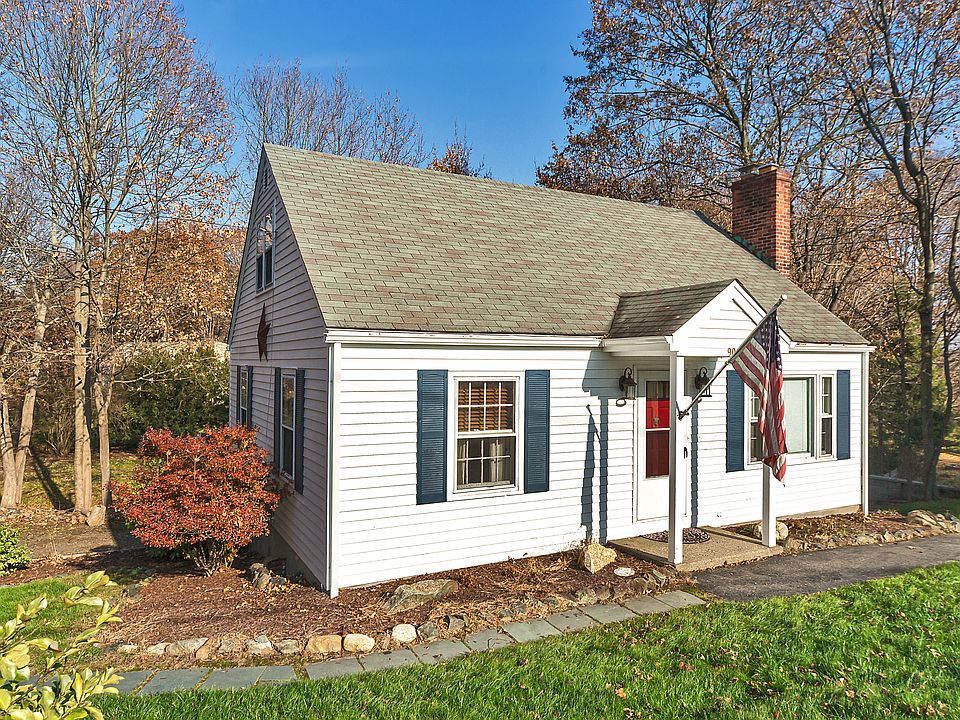 Quintessential New England charm abounds in the recently remolded Cape Cod style home. This home has been freshly painted inside and out and the hardwood floors have been redone. The cozy living room has a working wood fireplace. Lower level great room has just been finished with built ins and luxurious wall to wall carpet. All of this on a picturesque lot with stone wall and small brook meandering thru the backyard. Property has a storage shed and both a driveway in the rear and paved parking near the front door. NO FLOOD INSURANCE NEEDED