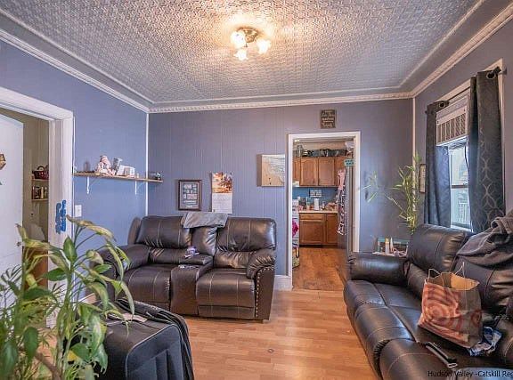 Don't miss out on this old style two story 2 family in the city of Kingston. Close to several amenities such as shops, restaurants, art studios, coffee shops and more makes this property a great investment. There are 2 one bedroom apartments each with one bath consisting of 4 rooms in each unit. The downstairs unit is month to month and has a versatile floor plan with full kitchen, tin ceilings, newer vinyl flooring, gas stove, newer refrigerator. This tenant pays for rent and electric only. The upstairs unit has a different floor plan also versatile and includes an enclosed sun porch. This tenant pays for rent and all utilities and is also month to month. There is off street parking, partially fenced in yard and back deck. Continue to rent out this property and make this your investment or convert this into a single family and live here full time.