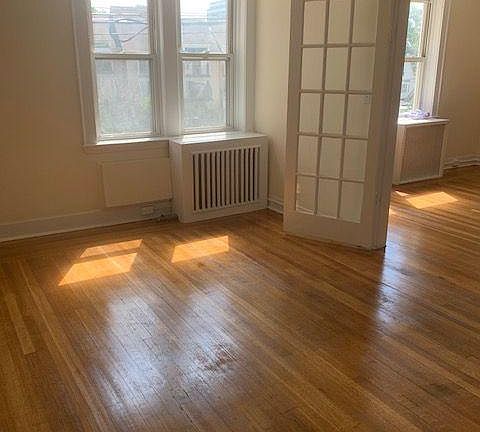 Oversized and updated 2 br 1 bth in midrise bldg in the heart of downtown! Eat in kitchen w/ dishwasher, gleaming, refinished hardwood floors throughout, sunfilled living room w/ walls of glass, large bedrooms w/ ample closets, includes heat/water, laundry on site, fresh paint, street parking, walk to train, shops, nightlife, minutes to highways and beaches. Owner pays for heat/water