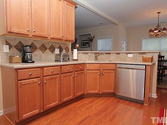 On the edge of RTP, low maintenance yard home in a welcoming community with field for play space & pool around corner. Close to shopping, grocery, coffee, fitness & work--yet still backs up to woods! Home has quality features like hardwood floors, solid surface kitchen counter tops, maple cabinets, and Hardi Plank siding. Master on 1st & 2nd flr, Jack & Jill bath upstairs with LG rooms. SEE VISUAL TOUR!