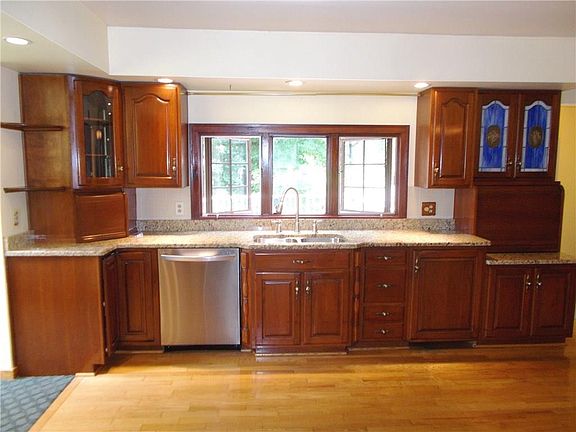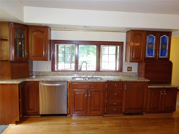 (GREAT NEW PRICE) Seller will look at offers. This totally renovated 4/5-bedroom/3-bath home shows pride in ownership and attention to detail. It features top-of-the line solid cherry kitchen with quartz countertops, hardwood floor, built-in cherry hutch with stained glass doors, all stainless steel appliances; washer/dryer stay; family room with sky lights and built-in oak cabinets, vaulted ceiling; formal living and dining rooms; large master suite with vanity and makeup area, walk-in closet, walk-in shower, jetted tub; first floor is handicap accessible with 36" doors, bedroom with full bath and walk-in shower, outside ramp; newer roof; covered side porch, huge back deck, double-wide blacktop driveway, detached 2-car garage. This one's move in ready. Call soon.