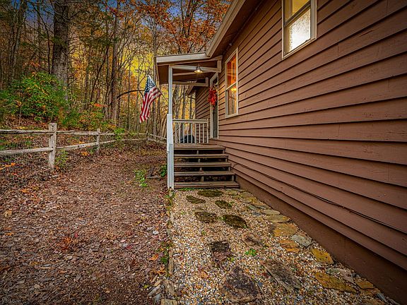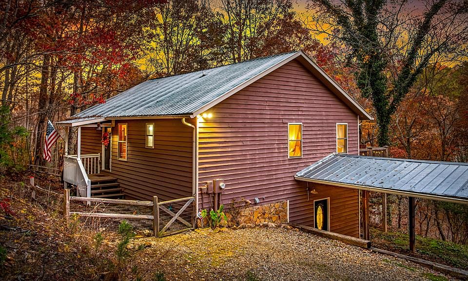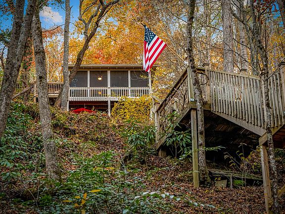 Nestled in nature, this charming rustic waterfront retreat is just the place to call home sweet home or home away from home if you're searching for a turn-key private retreat to enjoy some rest and relaxation. Located just a short drive from both downtown Blue Ridge and Blairsville, you'll appreciate easy access to major travel routes that offer amenities galore at your fingertips. Upon arrival you'll notice the soothing sounds of Galloway Branch. The sparkling waters help create the perfect atmosphere to wash all your cares away! The sounds and scenes of the great outdoors can be enjoyed by the water or from the two levels of outdoor living on the home. The main level offers a screened deck along with an uncovered space to enjoy a little extra sunlight, and the terrace level boasts its own covered outdoor lounging area. Indoors you'll immediately recognize the warmth of the natural materials and natural light ushering in the windows. The blend of wood, stone, drywall, and tile all work together to create a cozy feel throughout. The main level features the kitchen, dining area, living room, primary suite, and half bath, and the terrace level features a secondary living room, two bedrooms, two bathrooms, and additional flex space with a variety of potential uses – office, hobby room, etc. Other highlights include a fenced area off the main level, terrace level carport, sliding barn door, double vanity, two tiled showers one complete with soaking tub, updated fixtures & finishes throughout, stainless appliances, and, best of all, it is fully furnished and just awaiting you!