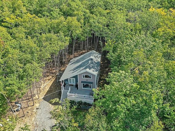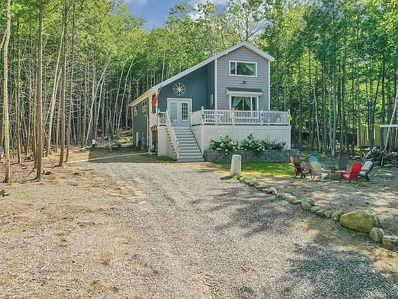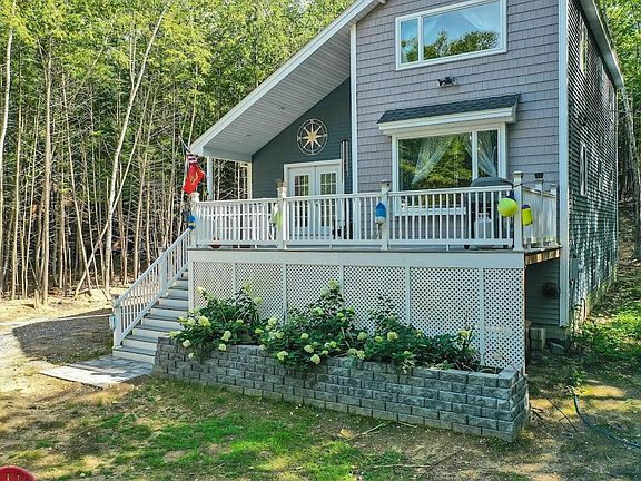 Designed for easy lake living! Constructed in 2018, light filled, airy, open concept Contemporary cottage. 1800sf, with a full basement ready to be finished into a game room, plumbed for a 3rd bath and has a pellet stove that heats the entire home! The main floor has a vaulted living room( with a fireplace), dining area,gorgeous kitchen w stainless steel appliances AND the master bedroom, which is adjacent to a full bath. Flooring is a high end laminate. Throughout the home there are pine tongue and groove ceilings. Walk up the oak staircase & there are two large bedrooms, a full bath and a loft/den area which would be great for a home office. The large Trex deck faces west and overlooks the fire pit in the front yard. Beach 10 is a short walk, where you can enjoy the beach & the magnificent sunsets! Sold mostly furnished, this cottage is one of the best Frye Island has to offer!
