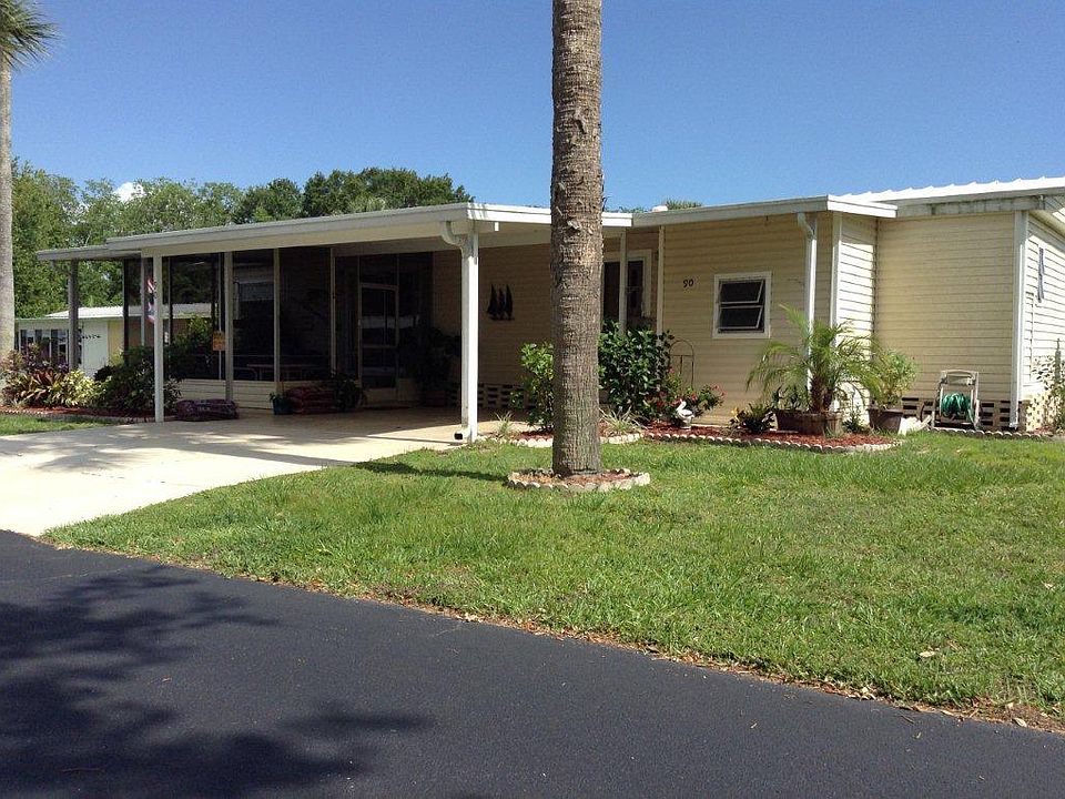 This home is in nice quiet park has vinyl siding, new air conditioning unit, 3 lovely Palm trees. It comes fully furnished with 2 bedroom, 1.5 baths, double driveway, screened in porch comes with BBQ grill. Lot rent $403 a month. Disclosure:Information is deemed to be correct but not guaranteed.