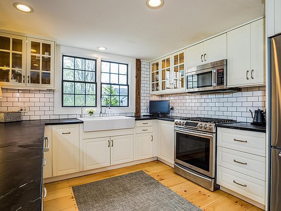 OPEN HOUSE CANCELLED. Just a few blocks from downtown Exeter, this home offers the charm of an 1835 exceptionally well constructed New England Colonial with the convenience of fully updated systems, a modern layout & desirable features. A renovated kitchen with soapstone counters, tile backsplash & stainless appliances opens to the sitting room with exposed beams and an original hearth & new glass fireplace insert. The family room features an original beehive oven hearth & more built-ins while the classic dining & living room each have their own fireplace. Upstairs, the primary suite offers a spa-like full bath with claw foot tub & tiled shower with new glass doors, separate laundry room, and an adjoining room for spare bedroom/office/study space with walls of bookshelves. The 2 front bedrooms share a full Jack & Jill bathroom. The full city block lot offers a garden oasis with brick patio & mature plantings stretching the yard to provide outdoor color in all seasons. Central a/c for summer days! After enjoying the outdoors, relax in the enclosed front porch which the owner has researched was constructed in the 1890's and includes the original lead glass windows. Envision this porch as a wonderful space for afternoon tea or a refreshment with friends before moving into the stunning nearby dining room for dinner. Recent improvements include a boiler, roof, attic insulation, modern windows & refinished floor. This home must be experienced in person to be truly appreciated!