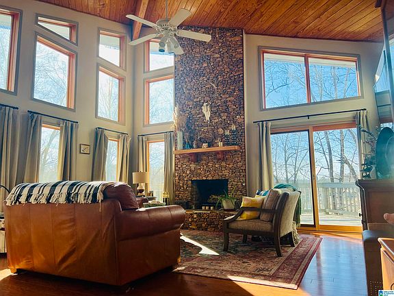 Beautiful, move in ready lake home with year round water. The home is in the cul-de-sac and sits on 2 waterfront lots with a total of 294 +/- feet of shoreline. Located in an established subdivision with a boat ramp and paved streets. Step inside to a beautiful vaulted tongue/grove ceiling family room with rock fireplace. Multiple doors open up to the deck overlooking the lake. The master bedroom/bathroom, kitchen, laundry room, 1 bedroom and full bath are all on the main level. There is also an attached garage off of the kitchen on the main level as well. Downstairs is another living area with a fireplace, 2 spacious bedrooms, a full bath and bonus room. Off the circular drive is an additional driveway to the lower level which is great for extra parking. Floating dock with lift and 2 jet ski portals.