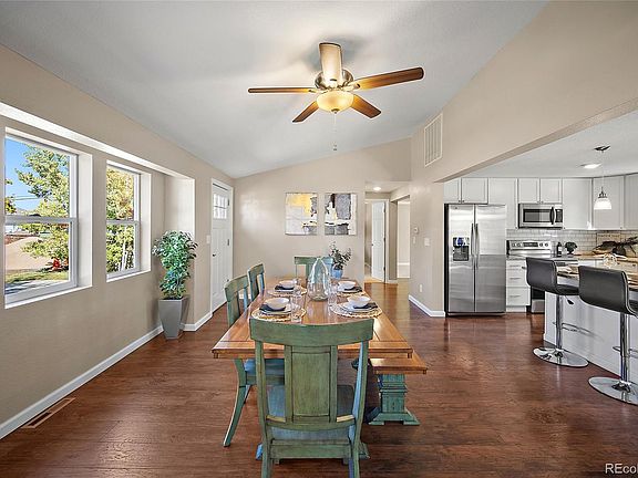 Step inside to an open, inviting floor plan with rich natural light, updated finishes, and warm vinyl floors that flow through the kitchen and dining area. The spacious kitchen features stainless steel appliances, granite countertops, a breakfast bar, and plenty of storage.
