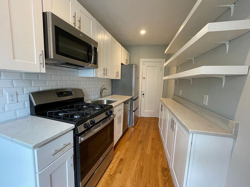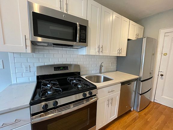 Available now! Desirable front-facing, renovated one bedroom condo in a convenient location between Cleveland Circle and Brookline. The spacious entry foyer has two closets and provides access to the living room, bedroom, and bathroom. The living room boasts three large windows which let in wonderful sunlight. Fully renovated kitchen with quartz counters, stainless appliances, and white cabinets, the bathroom has been updated with a new tub, vanities, and white tiles. The condo has also been fully repainted and floors have been refinished. Ample storage in the unit as well as extra storage in the building. Heat and hot water are included! The building is professionally managed and has on-site laundry facilities. Incredible common roof-deck! Easy walk to Whole Foods, Washington Sq/Coolidge Corner, Cleveland Circle and the C, D and B lines on the Greenline.