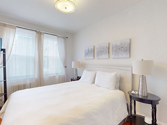 This sunny, quiet, top floor fully furnished unit is located in a professionally managed building. It includes an elevator, hardwood floors, granite/stainless kitchen and a beautiful common roof deck just one flight up from the apartment. The bedroom hosts a queen sized bed and the living room offers a futon that pulls out to a full sized bed. Both the living area and bedroom have AC units and there are laundry and storage on the first floor.