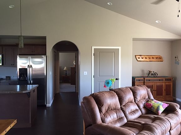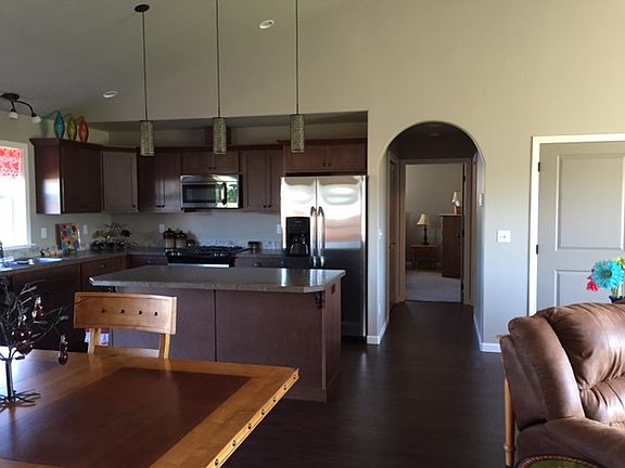 One year old home for sale in the premier Seven Sisters Addition. Private, quiet and secluded new development just east of Sandpoint. Three bedroom two bath single level open floor plan with a gas fire place. Beautiful hardwood floors, tile throughout, and carpet in the bedrooms. Vaulted ceiling creating an open feel. Tile back splash in the kitchen and bathrooms. High end window treatments and ceiling fans. Stainless steel Frigidaire appliances with upgraded gas convection stove/oven. Newer Whirlpool Cabrio Eco Smart washer/dryer negotiable. 47 in Sony Bravia tv wall mount above fire place also negotiable. Double car garage. Landscaped with underground sprinklers, ornamental trees, rock retaining wall and a secure cedar privacy fence. Unspoiled views of Schweitzer Mountain Ski Resort from the Master bedroom, dining room and kitchen. Schweitzer is only 10 minutes away. Close to Kootenai Elementary School, 10 minutes to public access on Lake Pend Oreille and 5 minutes to downtown Sandpoint. The home is roughly 1520 sq ft. $229,000. Call for showing by appointment only 208-920-0518.