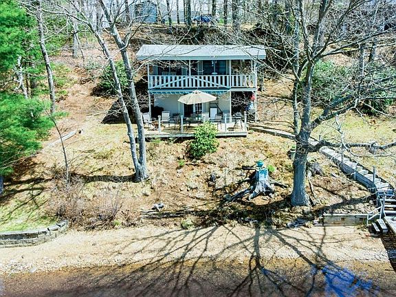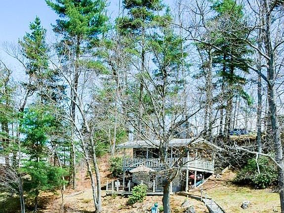 The sweetest WATERFRONT cottage with incredible water views from every level! Lake Wickaboag is a full recreational lake in the quaint town of West Brookfield. Located on a low traveled, dead end road, this charming gem is the perfect get-away cottage and is built on a slope to maximize the view. The main floor has a desirable open floor plan which includes the kitchen, dining area, family room with wood floors and vaulted ceiling. The upper entertaining deck is the perfect spot for morning coffee on your double swing and evening cocktails, while you watch the incredible sunsets. The lower level is reached by covered exterior stairs and includes a good sized bedroom with tile floor, updated bath and french doors. The lower level composite entertaining deck has modern wire railings, fire pit and even a storage bin, beverage fridge and grill, everything you need for summer parties! Also included is a dock, kayak racks and retractable awning overlooking your private beach area!