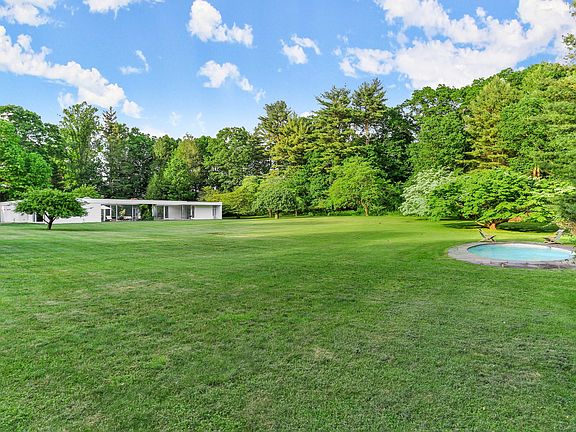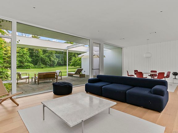 An incredibly rare opportunity to reside in a mid-century modern home designed by world renowned Harvard Five Architect, Eliot Noyes. In The Lee Ault House, originally built in 1951 and recently renovated with the utmost care and consideration for maintaining the brilliant mid-century modern design, the indoors and outdoors blend seamlessly to create a stunning, light filled home. You will delight in expansive views of nature, mature trees and level property with patios & courtyards and floor to ceiling glass walls throughout. This truly spectacular home is both minimalist yet inviting with new white oak floors throughout. The newly installed, state-of-the-art spacious kitchen/breakfast room which features Miele appliances, John Pawson stainless steel fixtures, a large island with Carrera marble countertops, and custom cabinetry. Bathrooms feature Carrera marble sinks and custom white oak cabinetry along with John Pawson fixtures and sink in the primary bath. The private and tranquil 4+ acre property was originally designed by Landscape Designer Thomas Church, and the home's original pool has been opened and heated. Available Furnished with flexible lease term. The furnished option includes Fritz Hansen furniture (interior), Carl Hansen patio furniture, and Francis Mallman grill. How wonderful to have the good fortune to live in a work of art. Offered as a flexible term furnished summer rental starting May 2025 through September 2025.