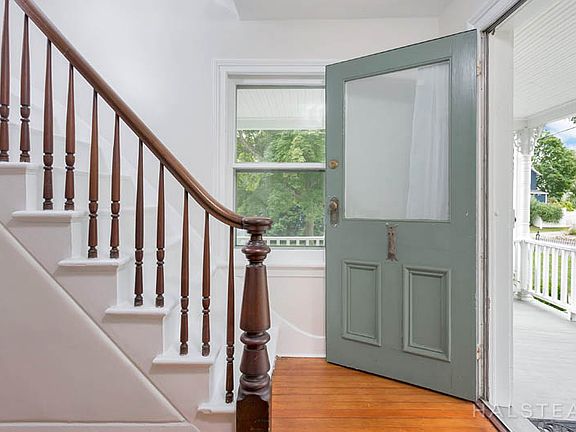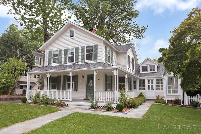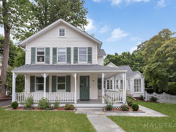 This Victorian Farmhouse has a welcoming wrap around porch and foyer with a curved staircase. The Living Room/Dining Room is brightened by a sun filled window seat and fireplace. The family room has built in bookshelves and cupboards. The spacious eat in kitchen overlooks the fenced in yard with flagstone terrace and a magnificent magnolia tree. The back staircase leads to an enchanting playroom. The two baths have been recently updated and the laundry is on the 2nd floor. This charming vintage home is a quick walk to the train and Tilley Pond Park. A true, in town treasure!