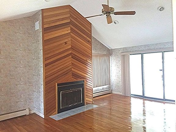 - Liv Dscrp: Fireplace, Flooring - Hardwood, Ceiling - Cathedral, Slider, Ceiling Fan(s)