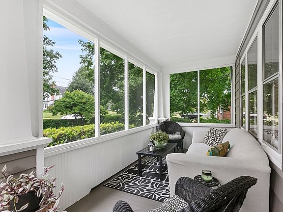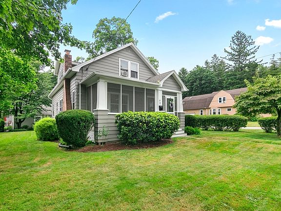 CHARMING home exudes character, warmth, loads of natural light & inviting interiors. Cozy front porch w/beadboard walls leads to front entry opening to living room through double French doors showcasing painted fireplace & dining room beyond through wide opening. Beautiful millwork like custom corner cabinet w/arched glass door & restored newel & banister. Kitchen offers great footprint w/painted white cabinetry, stainless appliances, original double bowl farmhouse sink & eating area w/back door accessing yard, brick patio & two car detached garage. Renovated 1st floor full bath highlighting plank tile flooring, granite topped white vanity & satin nickel fixtures plus convenient 1st floor bedroom and/or home office complete main level. 2nd floor features three good size bedrooms w/wood floors & closets, ample storage in eaves & full bath w/clawfoot tub. Lower-level provides good storage & laundry hookups. Easy location for commuting both north and south as well as accessing Town Green.